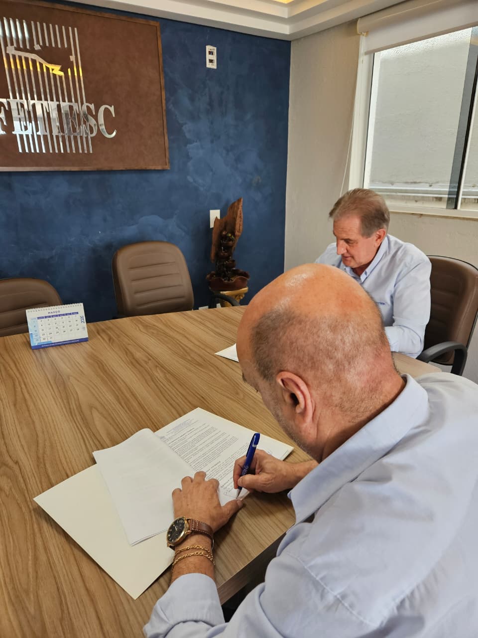 A assinatura do ACT ocorreu na sede da FETIESC, em Itapema. Além do presidente Idemar Antonio Martini, participaram o secretário-geral, Ednaldo Pedro Antônio, e o assessor jurídico, Jairo Leandro Rodrigues. Representando a empresa, estiveram presentes a coordenadora de Recursos Humanos, Suely da Silva, e a gerente de produção, Simone Cardoso.
