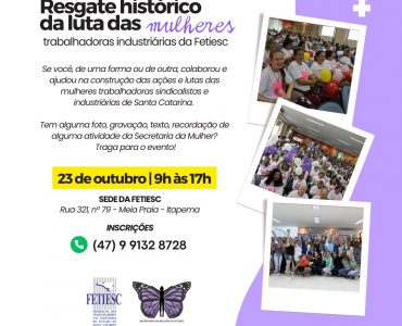 A FETIESC está organizando um encontro no dia 23 de outubro, a partir das 9h, em sua sede em Itapema, para reunir mulheres de sindicatos associados e discutir e planejar ações que visem reduzir as disparidades de gênero...